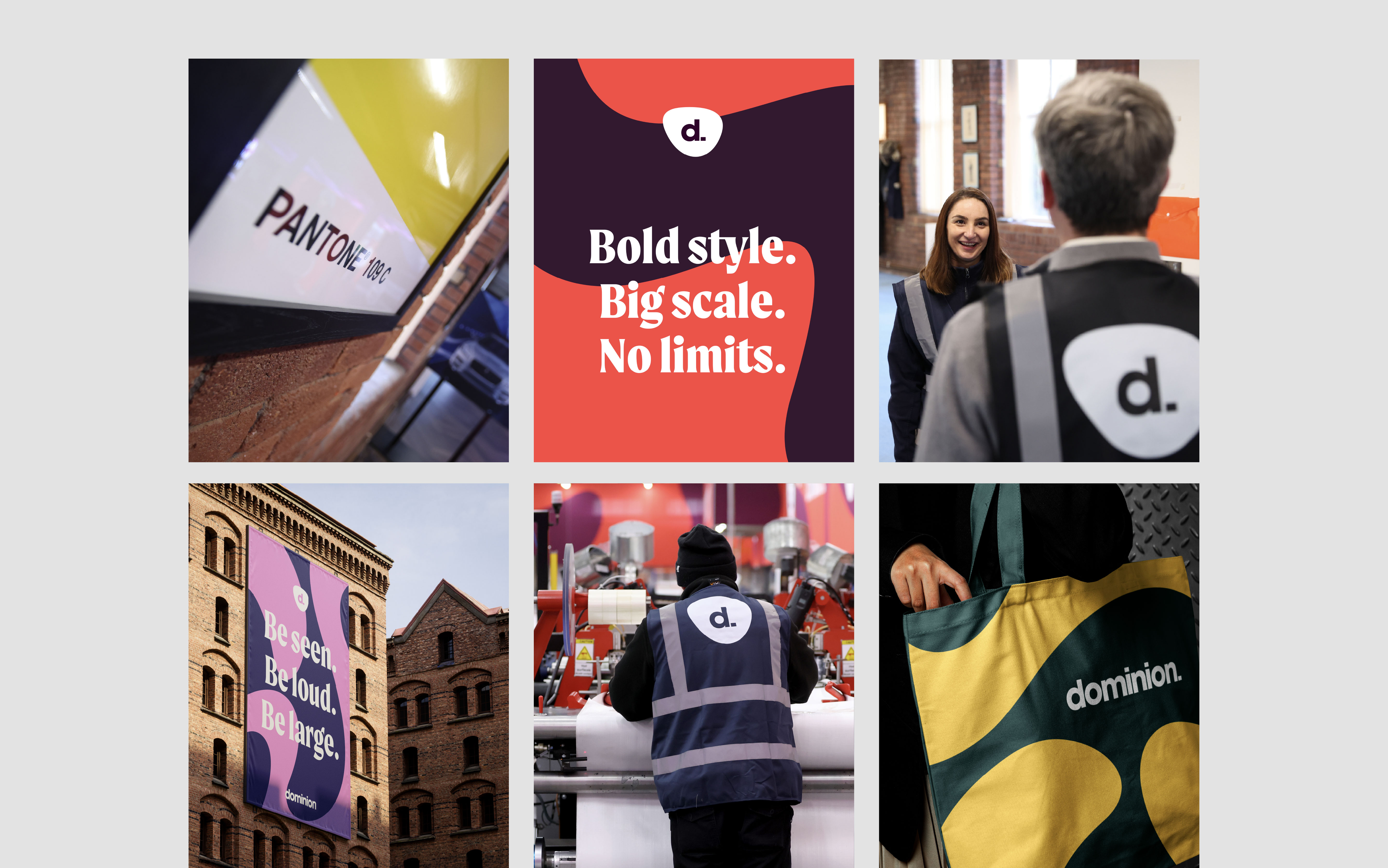 We started with a full brand workshop to uncover what makes Dominion, Dominion – that fearless, ‘big in print’ spirit that’s powered the business for more than 40 years, encapsulating both the scale of its large-format capabilities and the relentless ambition of its people. From there, we built a brand that wears this confidence loud and proud.