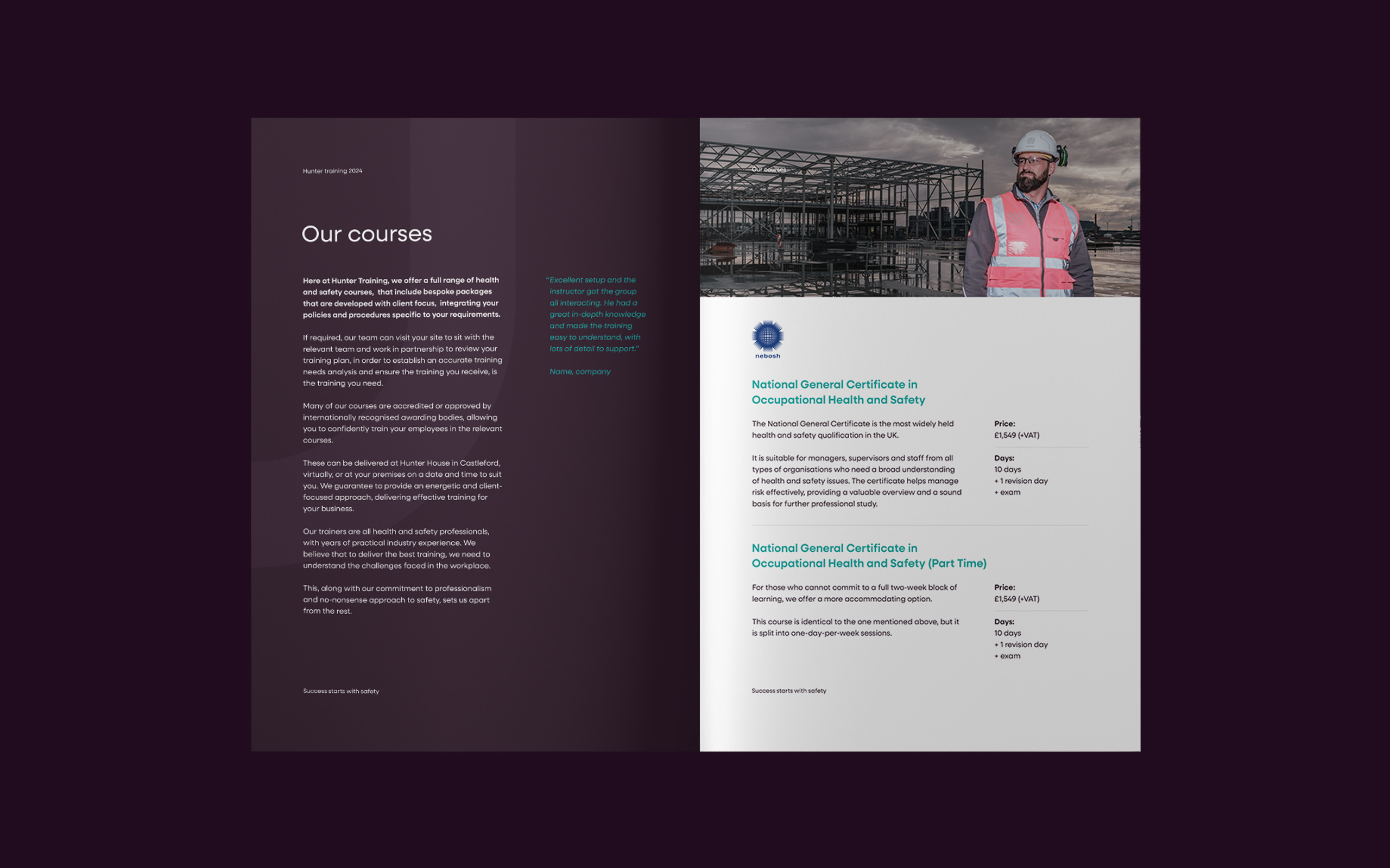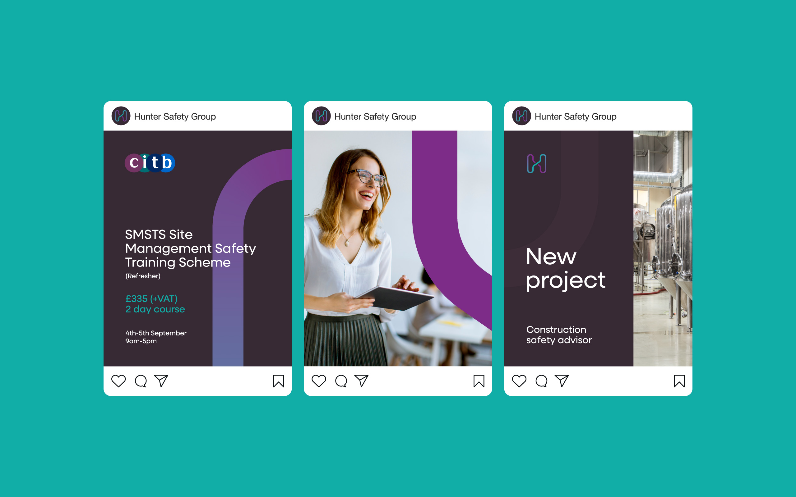 A Think Big™ brand workshop provided the foundations for our creative exploration and refinement of Hunter's new standout brand, which showcases the business's ethos and difference - the team integrates and works with clients every step of the way, unlike other health and safety companies.