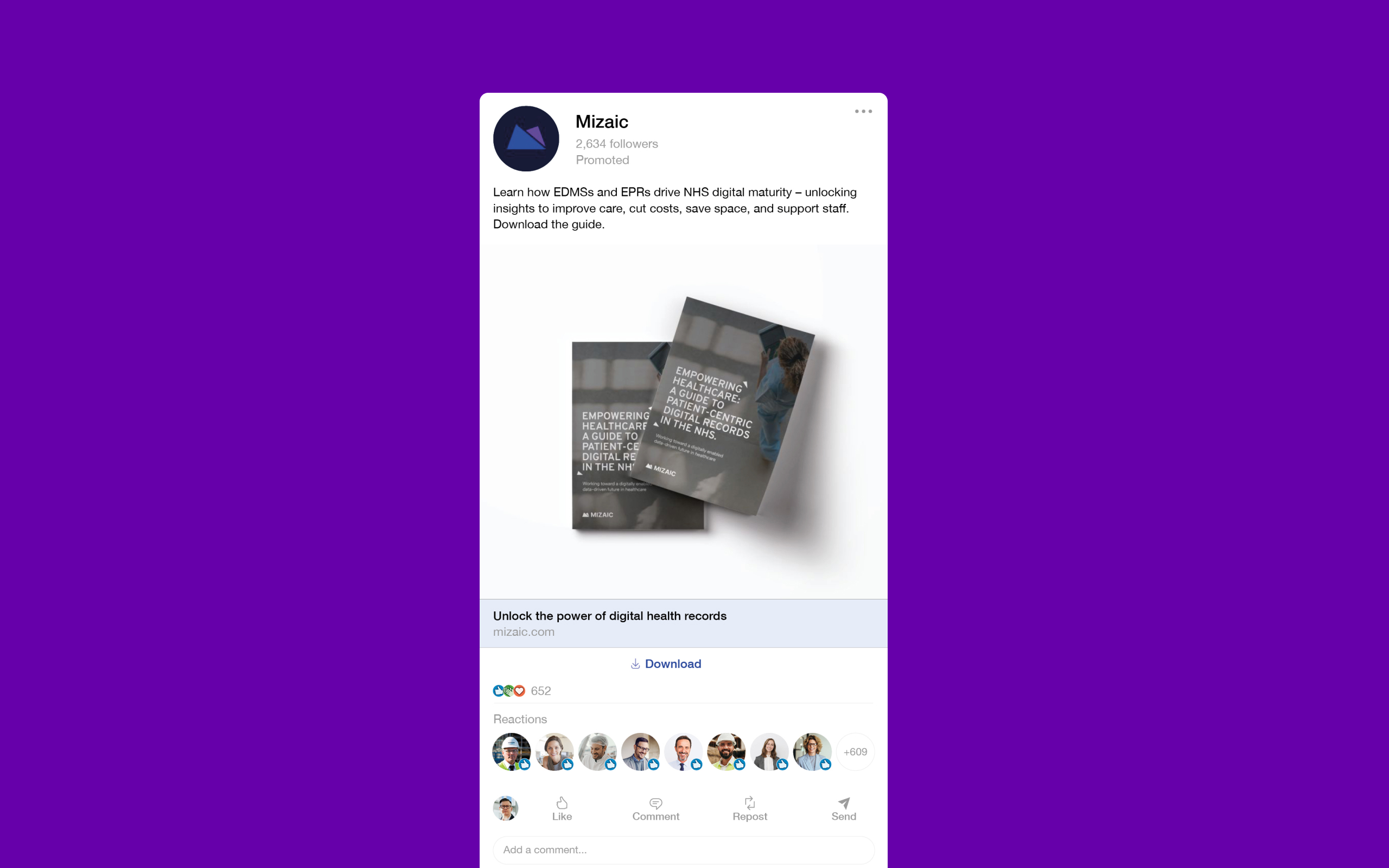 This single-image ad, with a guide download, targeted our NHS-only audience to raise awareness of how digital records empower clinicians and patients. It educates on key initiatives to drive NHS digital maturity.