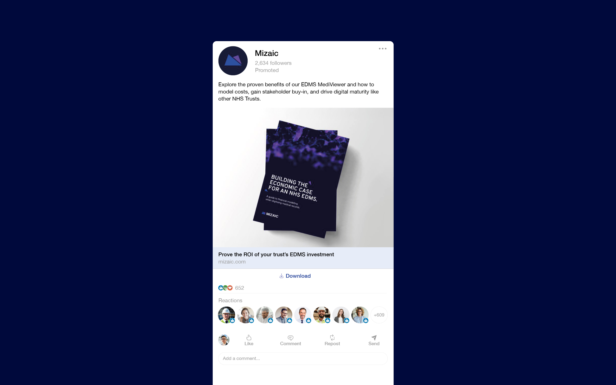 Again, we utilised existing ‘lead magnet’ assets for users to download ‘Building the economic case for an NHS EDMS’ within one click – a valuable asset to prove the return on investment (ROI) of a trust’s technology spend.
